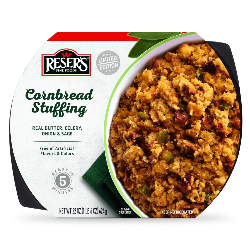 Reser’s Cornbread Stuffing is a light, buttery cornbread recipe. Made with real butter, celery, onion, and sage. Reser’s Cornbread Stuffing is a convenient solution for serving homemade quality sides with your Thanksgiving or holiday meal.